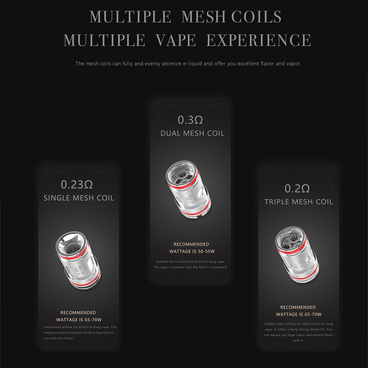 - - UN2-3 : 0,2Ω triple mesh : 65 à 70W